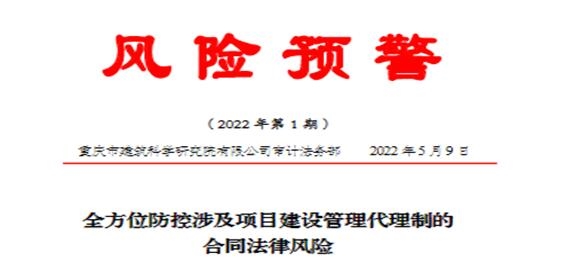 近日,公司審計法務(wù)部首次發(fā)布《風險預(yù)警》,針對涉及項目建設(shè)管理代理制的合同法律風險,詳細列舉不同情形下的具體風險并就防控要點進行提示,以期加強生產(chǎn)經(jīng)營部門的風險防控意識,進而構(gòu)筑公司穩(wěn)定發(fā)展的“防火墻”。