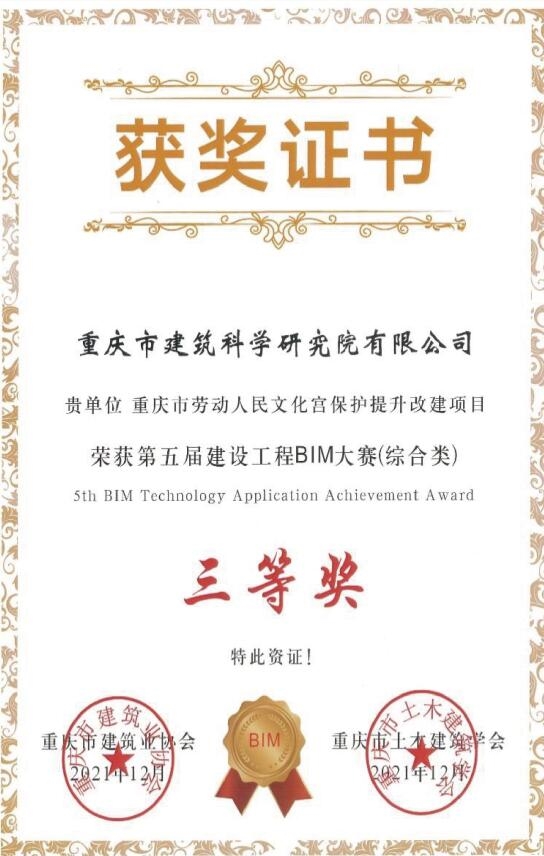 重慶市第五屆建設(shè)工程BIM大賽三等獎