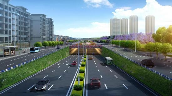 金渝大道與龍健路節(jié)點(diǎn)工程位于鴛鴦組團(tuán)南部,西側(cè)為金山隧道,東側(cè)為鴛鴦立交,北側(cè)為湖津路,南側(cè)為龍寧路。立交主線金渝大道全長(zhǎng)800米,含4條匝道,總長(zhǎng)為1112.472米。項(xiàng)目通車后保證了金渝大道直行過(guò)境交通的暢通性,提高了金渝大道對(duì)項(xiàng)目區(qū)域地塊的服務(wù)功能。本項(xiàng)目同時(shí)獲得2022年度“重慶市市政工程金杯獎(jiǎng)”。