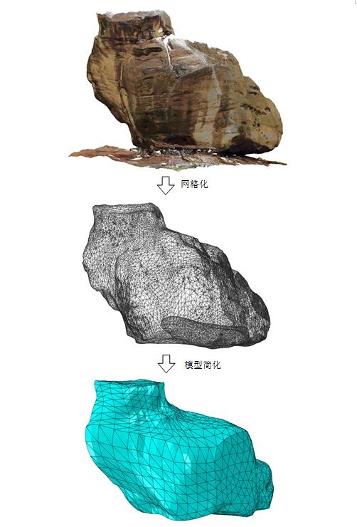 在對紗帽石穩(wěn)定性進行評估過程中,市建科院技術團隊與重慶交通大學相關專家經(jīng)過多次溝通,確定了定性分析+數(shù)值模擬的評估方案。評估中定性分析了紗帽石的當前所處環(huán)境、形態(tài)特征、結構特征、破壞模式等,作出紗帽石穩(wěn)定性定性分析初步評價。另外,評估采用三維激光掃描儀,對紗帽石進行3D掃描,復原出紗帽石的三維模型,再將其導入有限元計算軟件中,建立含有紗帽石的邊坡模型,對其在多種荷載工況下的穩(wěn)定性進行了有限元計算,最終提出了合理的評估和建議。