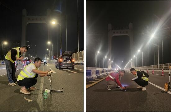 近日,為確保鵝公巖大橋行車安全,保障民生出行需求,重慶設計集團市建科院公司所屬子企業(yè)重慶市建設工程質(zhì)量檢驗測試中心有限公司(以下簡稱“檢測中心”)夜間對大橋開展橋面鋪裝層行病害調(diào)查及專項檢測。