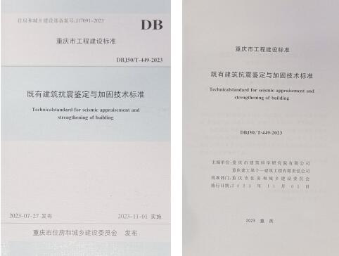 近日,由重慶設(shè)計集團所屬子企業(yè)重慶市建筑科學(xué)研究院有限公司主編的重慶地方標(biāo)準(zhǔn)《既有建筑抗震鑒定與加固技術(shù)標(biāo)準(zhǔn)》(DB50/TT-449-2023)正式發(fā)布實施。