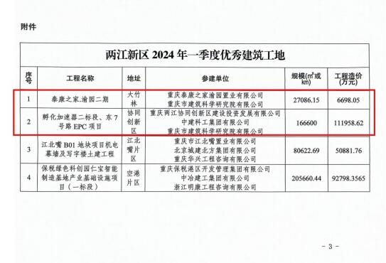 近日,由重慶設(shè)計集團(tuán)市建科院公司承擔(dān)監(jiān)理的泰康之家·渝園二期項目以及孵化加速器二標(biāo)段、東7號路EPC項目在眾多建筑工地中脫穎而出,獲重慶兩江新區(qū)建設(shè)管理局“2024年第一季度優(yōu)秀建筑工地”表彰。