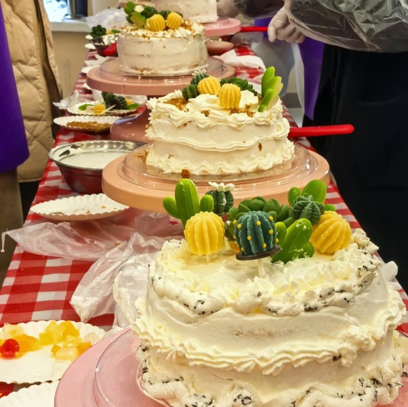 活動(dòng)特邀專業(yè)烘焙師全程指導(dǎo),現(xiàn)場(chǎng)宛如專業(yè)烘焙工坊,轉(zhuǎn)臺(tái)、抹刀等專業(yè)器具及新鮮食材一應(yīng)俱全。烘焙師現(xiàn)場(chǎng)示范蛋糕制作的抹面技法,重點(diǎn)講解裱花技巧、裝飾布局等實(shí)操要點(diǎn)。女職工分組操作,通過奶油調(diào)色、裱花造型等創(chuàng)意實(shí)踐,完成各具特色的節(jié)日蛋糕?,F(xiàn)場(chǎng)此起彼伏的交流聲與歡笑聲中,既有裱花失誤引發(fā)的趣味互動(dòng),也不乏驚艷造型收獲的集體贊嘆。制作完成后,女職工們攜作品合影留念,并將成品封裝帶回家中分享。